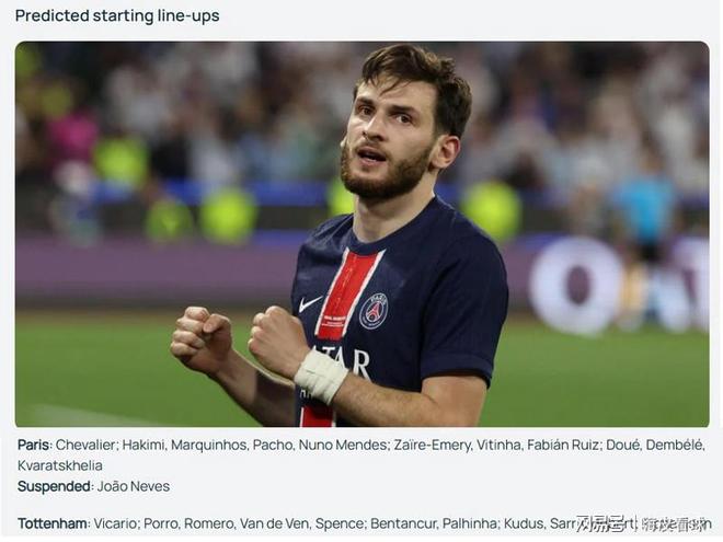 2025賽季的歐洲超級杯很快上演,上賽季的歐冠冠軍巴黎圣日耳曼,將會面對歐聯(lián)杯冠軍熱刺,同時也是巴黎今年內(nèi),第六次遇上英超豪門球隊。世俱杯決賽得到紅牌的內(nèi)維斯,確認(rèn)將會受到停賽的處罰,無法參加歐超杯。